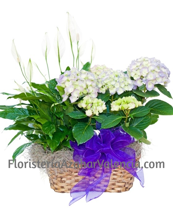 Silvestre, es esta Cesta Plantas Toronto, compuesta por bonitas plantas como es el spahthiphylium, la hortensia, todo ello apoyado en una cesta de mimbre. Es el mejor regalo, para sorprender y homenajear a una persona apreciada y querida. Nuestras Cesta Plantas Toronto, están realizados siempre con plantas de primera calidad y frescas. Son suministradas diariamente por proveedores nacionales e internacionales. Las cestas de plantas de regalo, están realizados siempre por floristas profesionales, especialistas en el Arte Floral, por lo que siempre presentamos un producto fresco y elaborado con mucho mimo. En Floristería Azahar, su floristería online, expertos en el arte floral, podemos ayudarle a hacer el regalo perfecto. Haremos llegar a su ser querido, todo el amor y alegría que quiere demostrar con este bonita cesta de flores a domicilio. Sin duda, lo que quiere es hacer el mejor regalo.