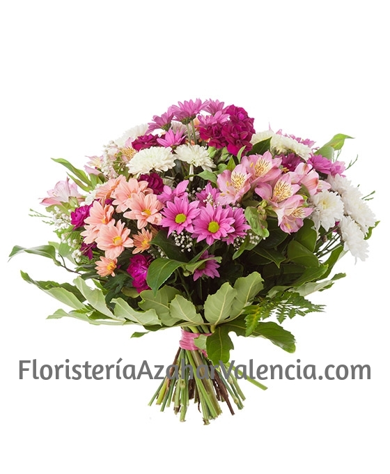 Alegre, bonito y fresco Ramo Flores Grecia en tonos morados y rosados. Sin duda, si queremos alegrar el día a una persona es el ramo adecuado. Es un detalle bonito y especial que presenta nuestra Floristería Online de Floristería Azahar. Un poco de la madre naturaleza trasladado a un bonito ramo de flores. En este ramo, predominan las margaritas en tonos morados y las adornan unos bonitos verdes, que le dan un aire silvestre (8 varas de margaritas, 8 alstroemerias, paniculata, verdes variados, celofán y lazo). Nuestros ramos de regalo están realizados siempre con flores de primera calidad y frescas. Son suministradas diariamente por proveedores nacionales e internacionales. Los ramos de flores para regalo, están realizados siempre por floristas profesionales, especialistas en el Arte Floral, por lo que siempre presentamos un producto fresco y elaborado con mucho mimo. Además, si desea enviar flores urgentes, puede optar a nuestro servicio de envíos.